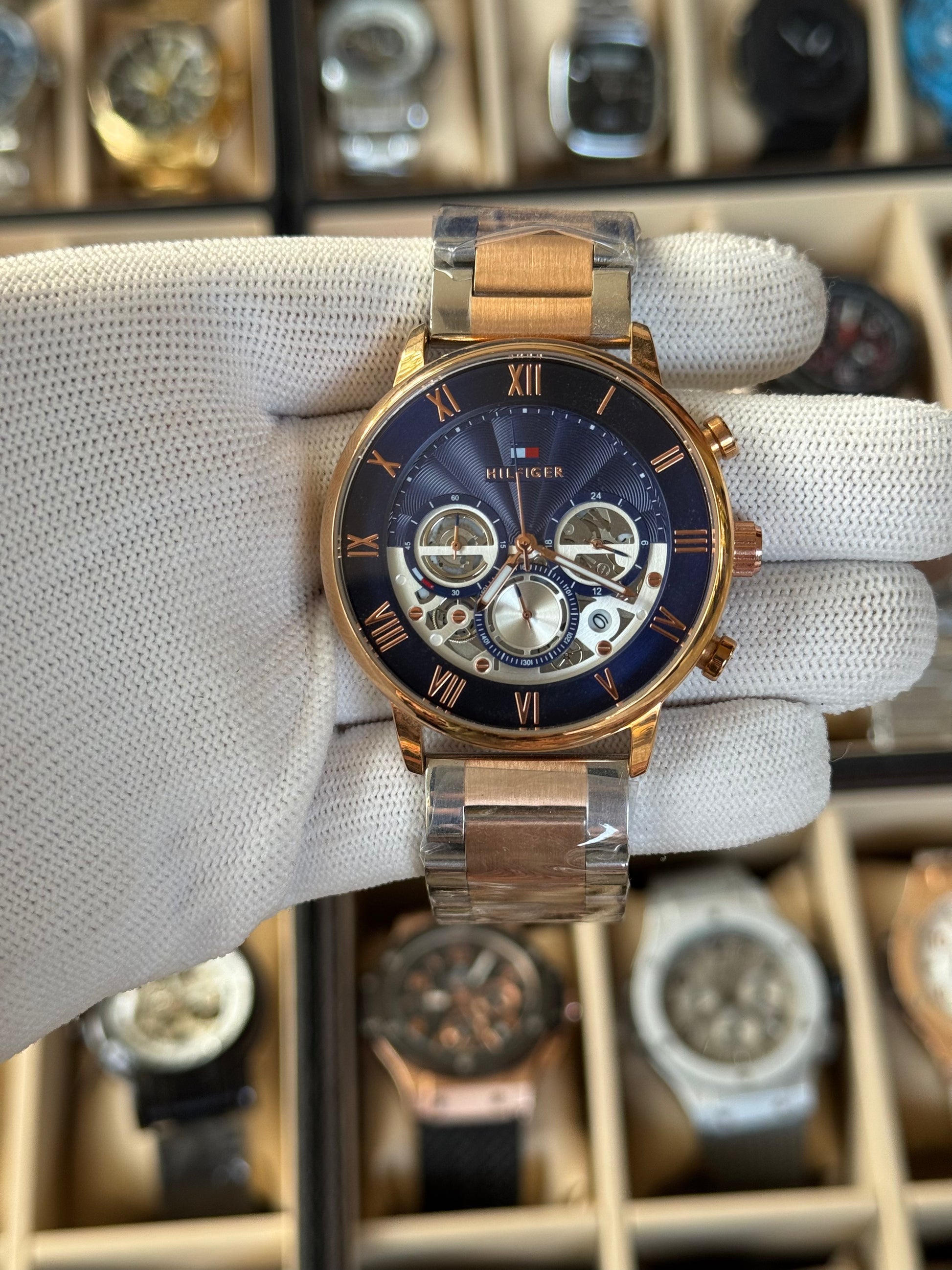 Hilfiger Elegent First Copy Blue Dial, Stainless Steel Silver & Rose Gold Watch