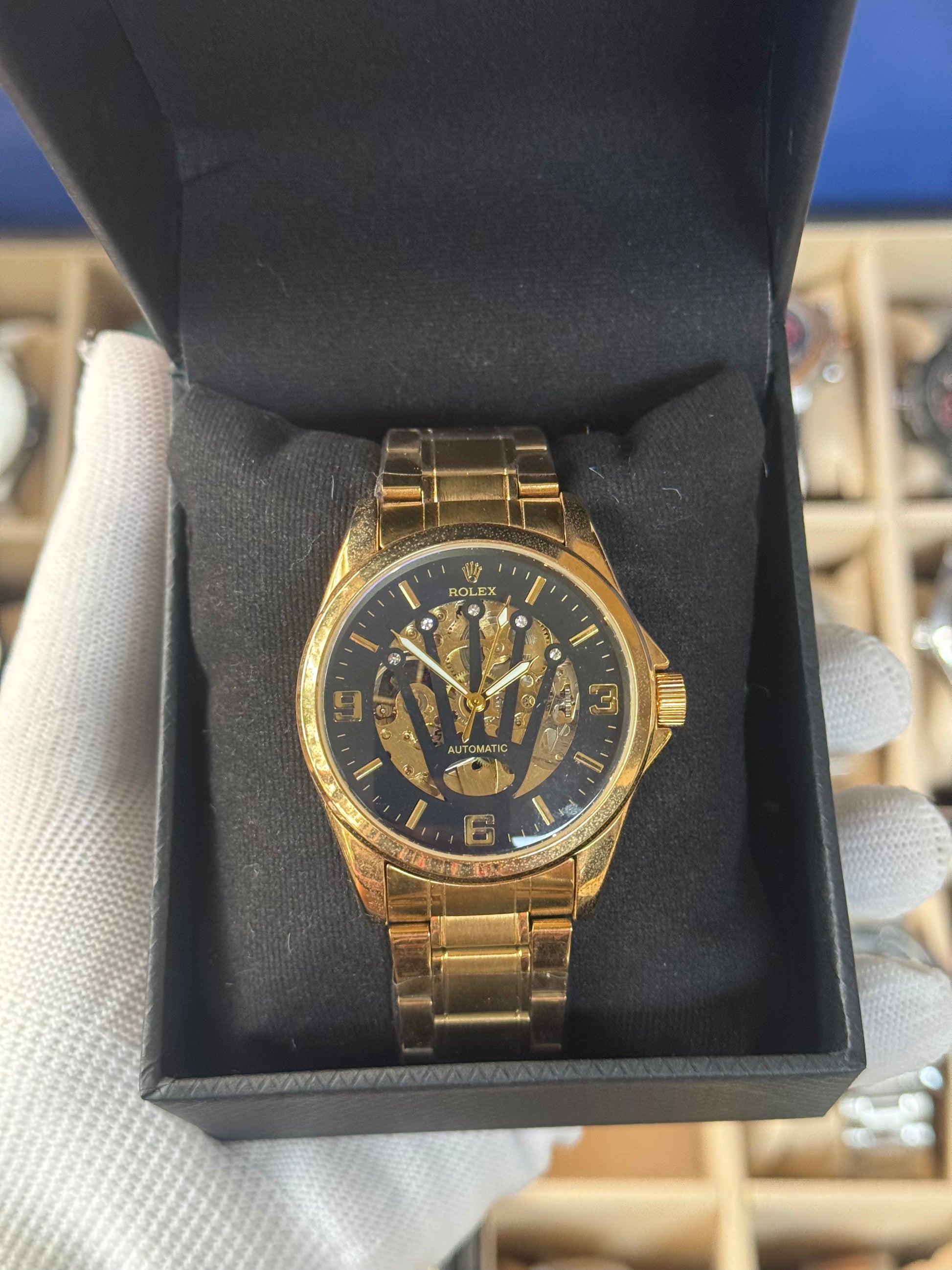 Rolex Automatic First Copy Stainless Steel Gold , Black,Skeleton Dial Watch For Men