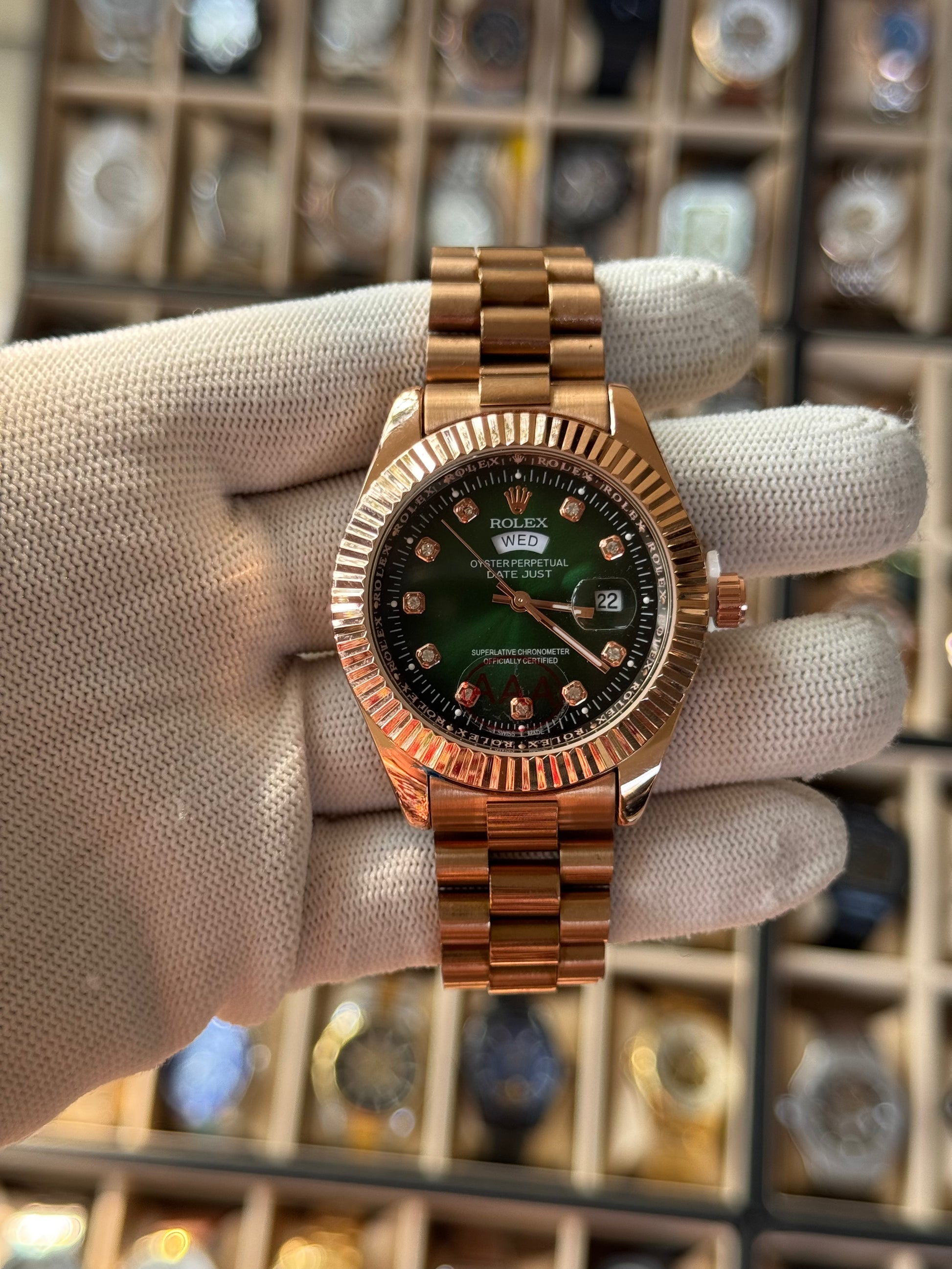 Rolex First Copy Stainless Steel Gold Green dial heavy Glass Watch For MEN